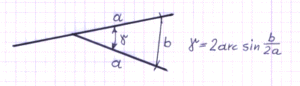 2. styczna do łuku T = R.tg(gama/2); długość łuku Ł = R.gama; dla gama w radianach